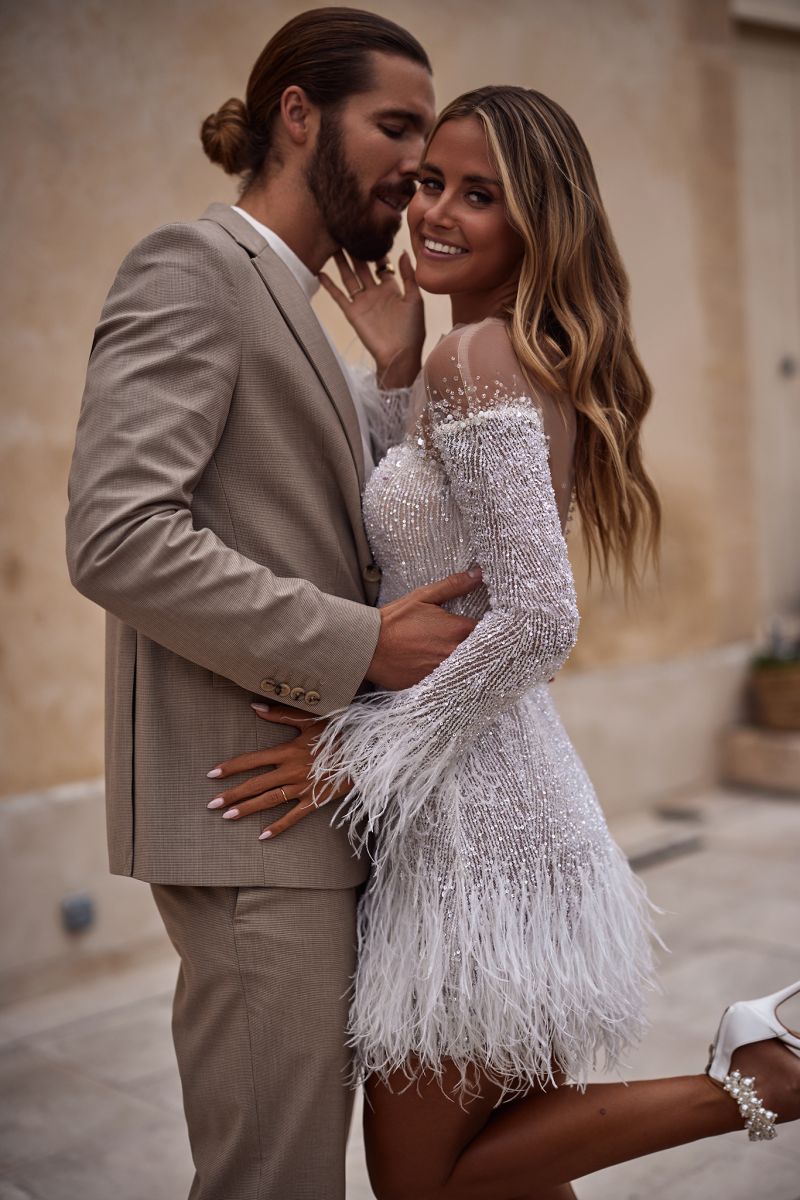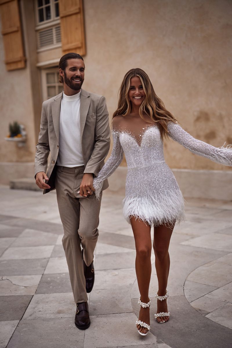 打破長裙擺的設定,短款婚紗成為現代新娘的寵兒。